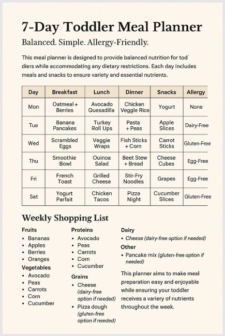 Sample Balanced Meal Plan for a 2-Year-Old