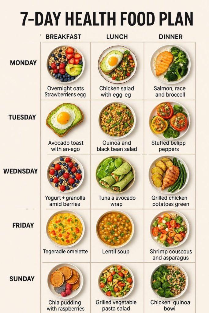 Here’s a simple guide to building a balanced plate. Remember, you don’t need to include everything at every meal—aim for variety over the course of the day.
